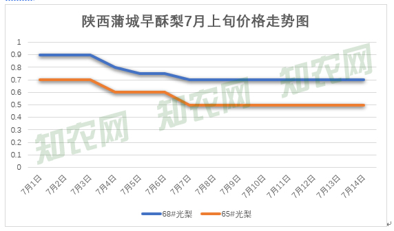 轉眼已進入7月中旬,接下來簡單的和大家聊下7月上旬蒲城早酥梨的價格走勢。據知農網商務信息平臺數據顯示: