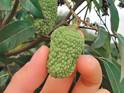 果農黃先生說,“小年”再加上“暖冬”,導致荔枝花期只有零星花苞。而且,荔枝處于盛花期,連日的雨水也對荔枝授粉產生較大的破壞,直接影響荔枝的產量。今年的荔枝成熟之路,真可謂是一波三折。