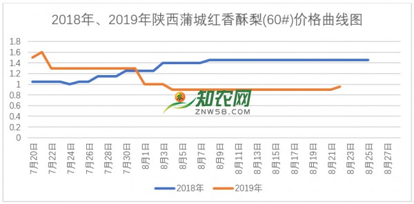 2018年、2019年陜西蒲城紅香酥梨(60#)價格曲線圖