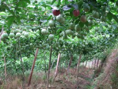 百香果是一種熱帶藤本常綠果樹,壽命長達8—10年。果皮厚而堅硬,可作飼料和提取果膠,果實球形或長圓球形,內有黃色果汁和黑色種子。