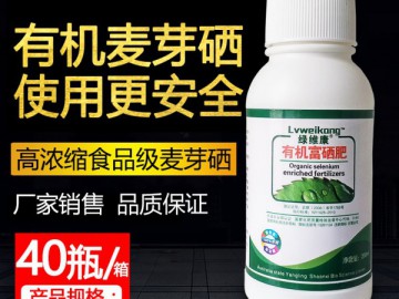 綠維康牌有機富硒液體肥是西北農林科技大學專家多年潛心研究而成的一種高科技速效硒肥,本品以食用級的硒麥芽為主要原料并內含Se、Ti及多種螯合微量元素,具有使用方便、含硒量高等特點。經使用后作物含硒量大幅度提高(均達到國家GB標準規定),是一種高效高濃縮、多功能植物生長劑。 本品通過有機生物液肥工藝生產,不僅無毒、且使作物更容易吸收,并具有較強的抑病、增產、補硒、改善農作物品質,促進人體健康等多重作用,使用本品后:降解重金屬(鉛、鎘、汞、砷)40%以上,大田作物增產15%以上,蔬菜增產20%以上,水果增產15%以上,是現代農業生產有機保健富硒農產品的首選產品。