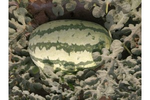 金城五號是原甘肅蘭州西甜瓜于八十年代中后期選育的雜交一代中晚熟西瓜品種,全生育期105~110天。主蔓第12~15節出現第一朵雌花,以后每隔4~5節出現雌花。從開花至果實成熟需38天左右,果實橢圓形,果皮淺綠覆有16~18條綠色條帶,外觀極美。皮厚而堅韌,耐旱性強。果肉鮮紅,肉質緊實,質地堅韌,極耐貯運,中心含糖量10%以上。單瓜重6~8千克,最大達15千克,植株生長勢強,易坐果,豐產性能好,適應性強,近兩年在陜西蒲城廣泛種植,并獲得良好的口碑。